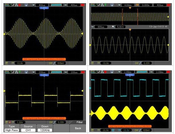 One-touch automatic setup optimizes the position, range, timebase, and triggering to assure a stable display of virtually any waveform.